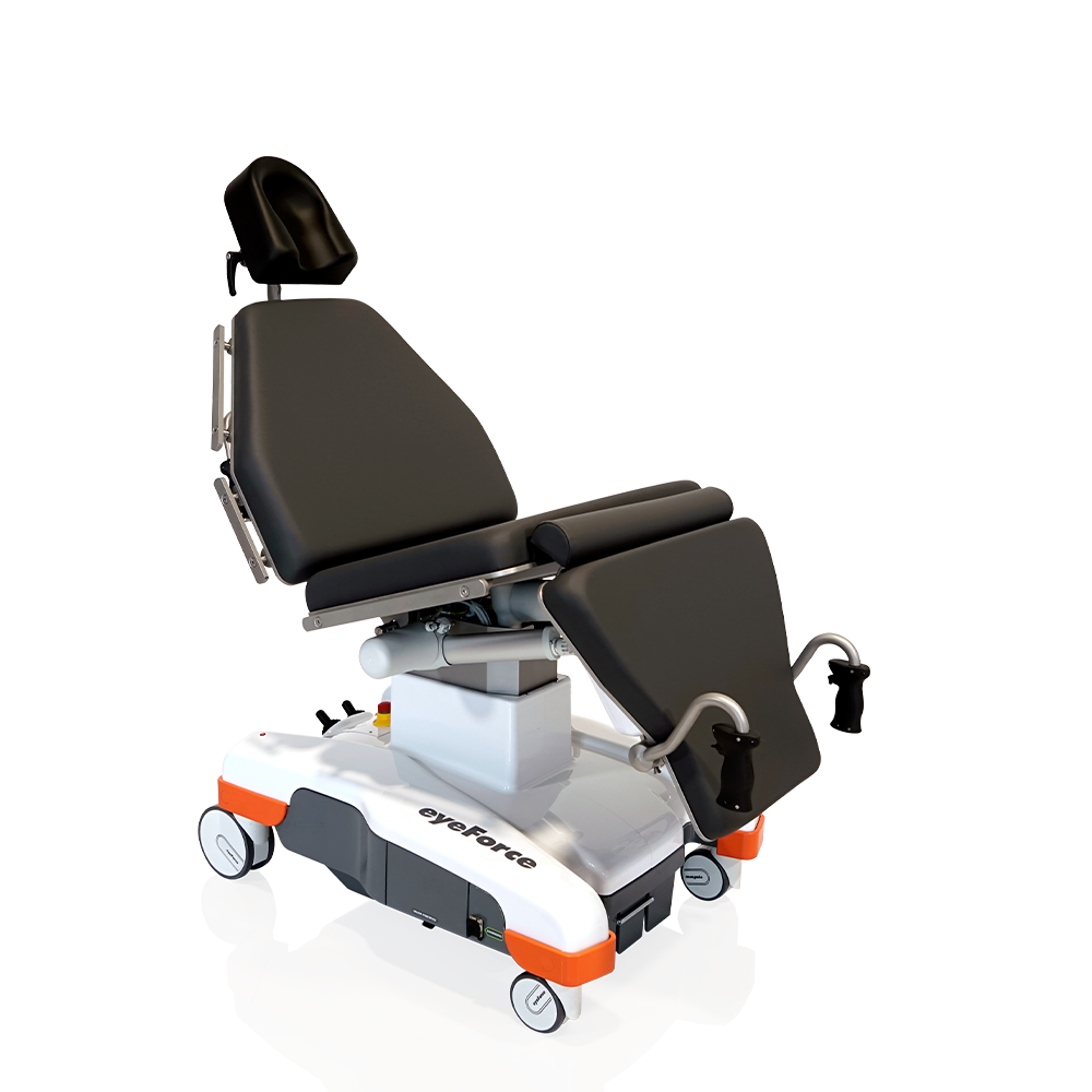 The eyeForce Ophthalmic Chair from UFSK is a high-performance, battery-powered surgical chair designed for precision, mobility, and patient comfort in ophthalmic procedures. Featuring the optional e‑Drive system, programmable positioning, and a low access height, it streamlines workflow while enhancing safety for both staff and patients. Its compact, ergonomic design and flexible accessory options make it ideal for busy day surgeries and rotating operating theatres.