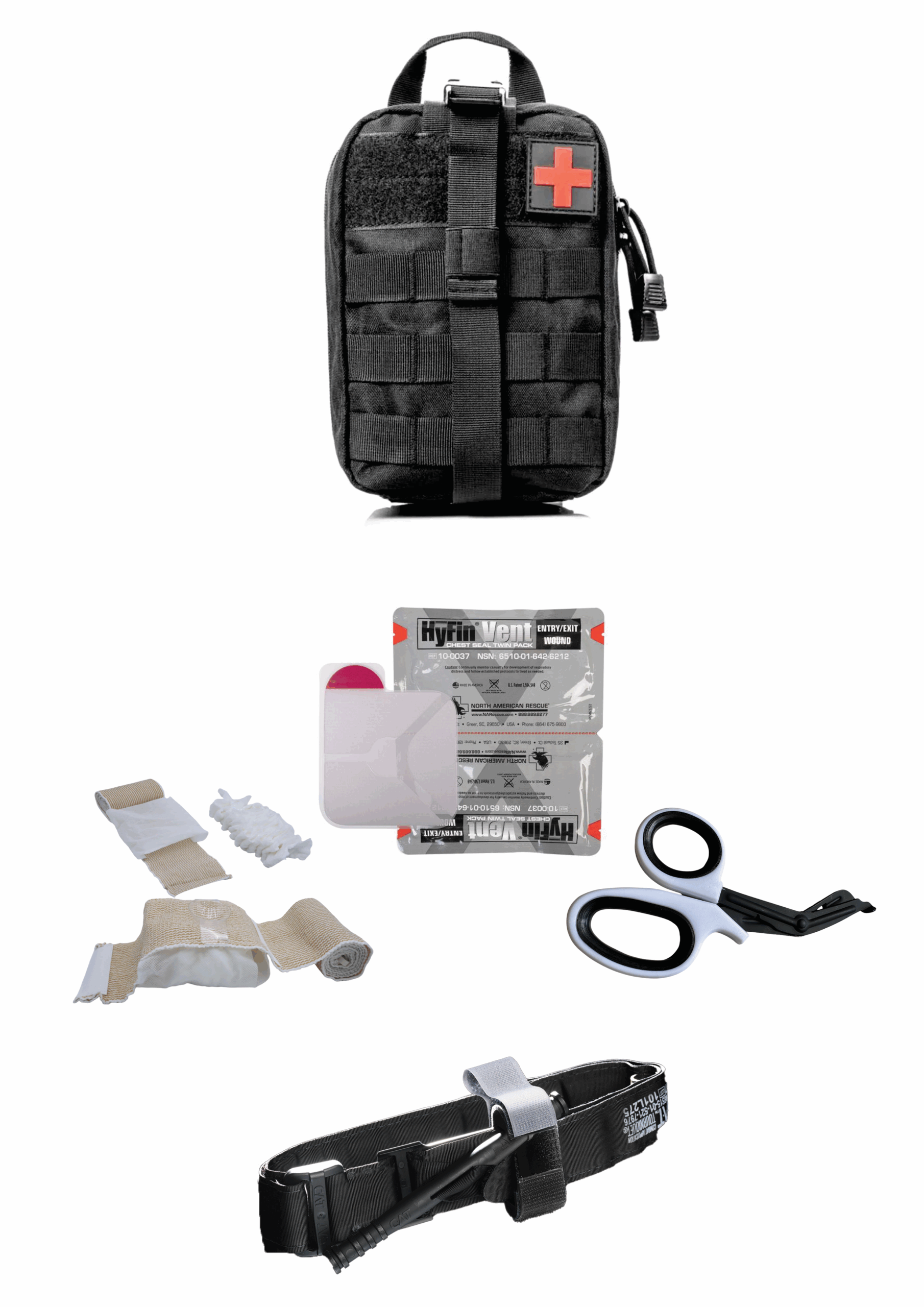 - Field-Proven Components: CAT® Gen7 tourniquet, HyFin® chest seals and advanced pressure bandage provide gold-standard medical capability.
