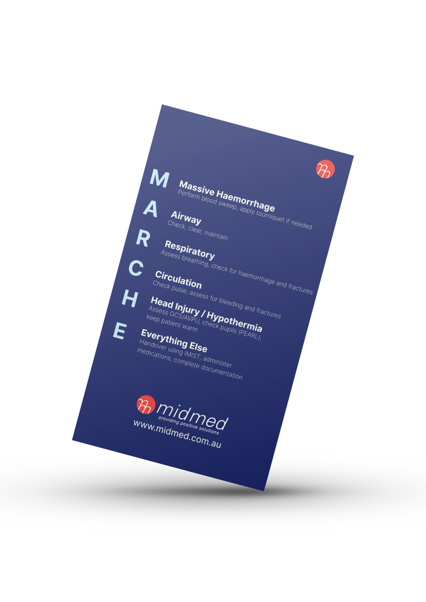 - Covers key medical protocols for trauma and handover